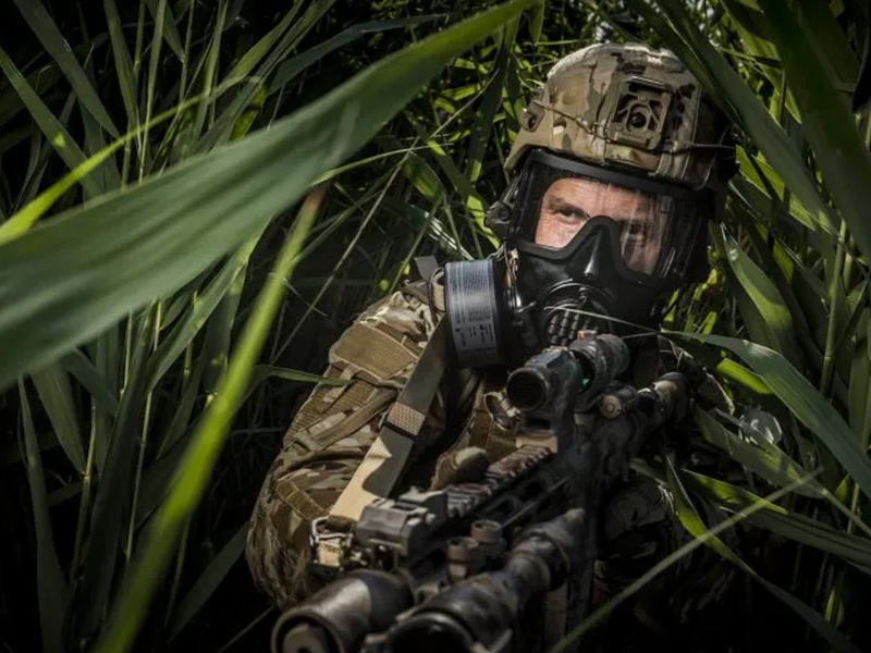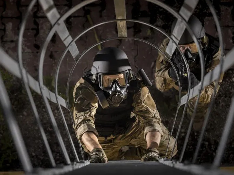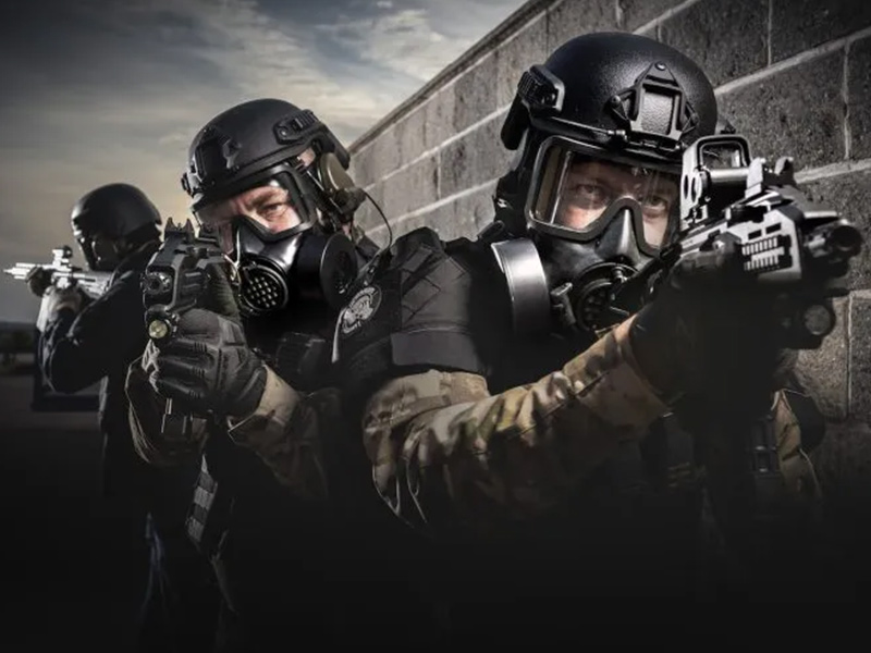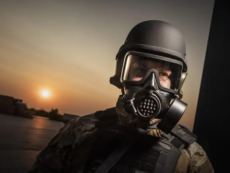 The OM-2020 protective mask, when paired with a compatible filter, provides full-face protection against chemical, biological, radiological, and nuclear (CBRN) threats, including gases, vapors, and solid or liquid aerosols.